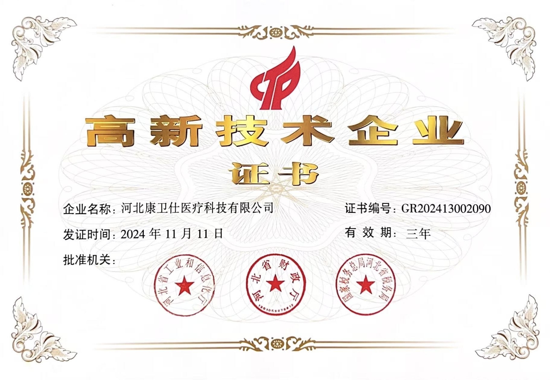 高新技术企业证书